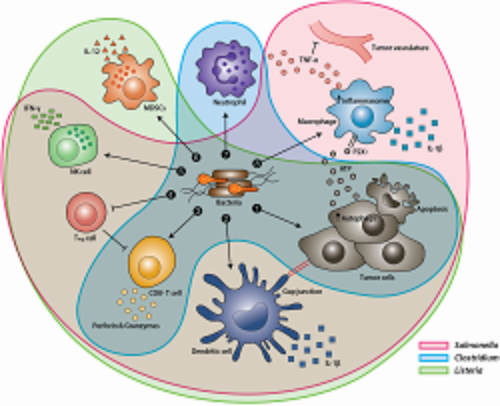 برخی از باکتریها میتوانند در ایجاد و پیشرفت تومورها نقش داشته باشند. این نقش میتواند به دو صورت باشد: مستقیم و غیرمستقیم. به طور مستقیم، برخی باکتریها میتوانند با ایجاد عفونتهای مزمن و التهاب، باعث جهشهای ژنتیکی در سلولها شده و در نهایت به تشکیل تومور منجر شوند. به طور غیرمستقیم، باکتریها میتوانند با تغییر میکروبیوم روده، بر سیستم ایمنی تأثیر بگذارند و این تغییرات میتوانند در پاسخ به سرطان و یا پیشرفت آن نقش داشته باشند.