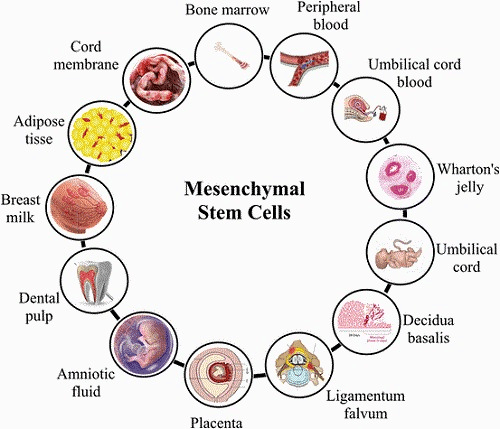 سلول بنیادی مزانشیمی (MSCs) سلول‌های چند توانی هستند که می‌توانند به انواع سلول‌ها از جمله سلول‌های استخوانی، سلول‌های غضروفی و ​​سلول‌های چربی تمایز یابند. آنها در بافت‌های مختلف مانند مغز استخوان، بافت چربی و بند ناف یافت می‌شوند.